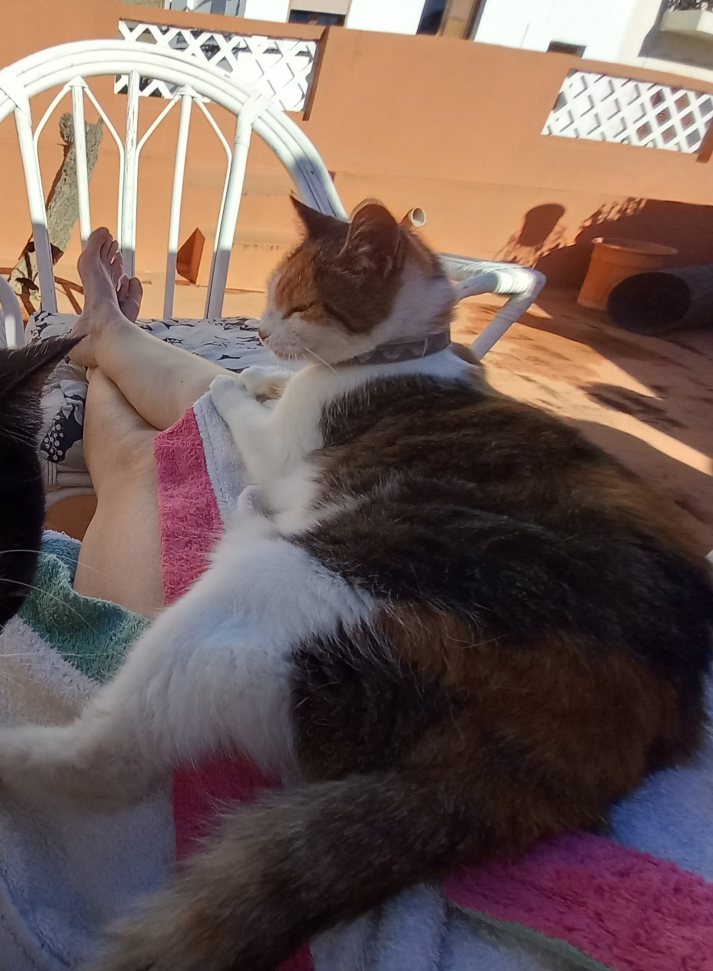 Garfield (Pflegekatze) Hat sich wärend meiner Abwesenheit das Fell stressbedingt ausgerissen bzw geschleckt. Jetzt bekommt er viel Aufmerksamkeit und Pflege von mir. Lilly und Cash geht es gut aber Sie schlafen viel denn bei dem Wetter jagt man kein Tier vor die Tür.